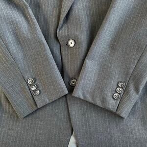 🔥Vintage 90s Jones New York Pinstriped Wool Mens 2 Pc Suit Blazer R43 Pants 37 Preppy
