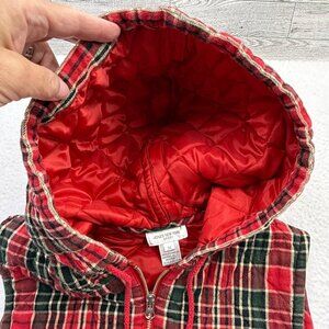 Description: Jones New York Sport Womens Petite Quilted Hooded Zip Vest Red Plaid