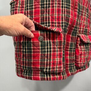 VTG Jones New York Quilted Plaid Vest Zip Up Hooded Chore Preppy Outdoor Size M