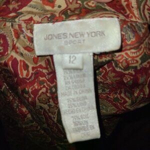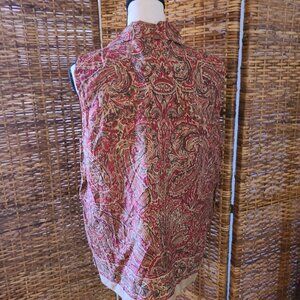VTG Jones New York Sleeveless Blouse Paisley Silk Linen Blend SZ 12 Wood Buttons