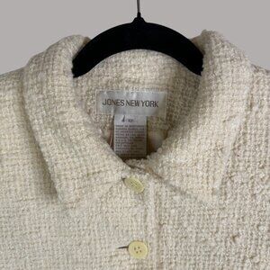 VTG Jones New York Timeless Wool Blend Cream Textured Blazer Jacket W Sz 12 NWT
