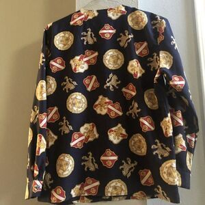 VTG Jones New York Lion Crest Emblem Size 8 Blouse Pristine Blue Navy
