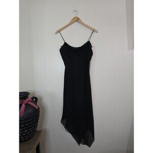 VTG Jones Wear Slip Dress Womens Size 6 Black Chiffon Overlay Sheer Sleeveless