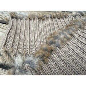 VTG Joolay ACRYLIC & RABBIT FUR TRIM BROWN SCARF WARM 35" ROUND 8"W.