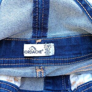Up for sale are these adorable Jordache denim overall shorts in a size 3T. From the style I believe they are vintage from the Y2K era. They feature a classic blue jean wash, white lace trim at the hem, and a cute white flower applique on the front bib pocket. They have adjustable straps and front and back pockets, It is made of cotton, polyester, and spandex. I believe these are new without the tag. They look unused. Thanks for looking!