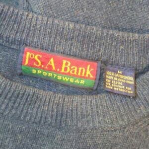 VTG Jos A Bank 100% Lambswool Crew Neck Pullover Mens Sweater Blue Medium