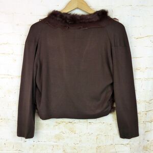 VTG Joseph A. Cardigan Women XL Brown Silk Blend Faux Fur Trim Crop Sweater Y2K