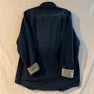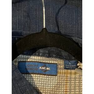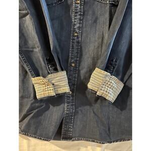 VTG Joseph Abboud Shirt Denim Button Down Plaid Inside Cuffs Size L