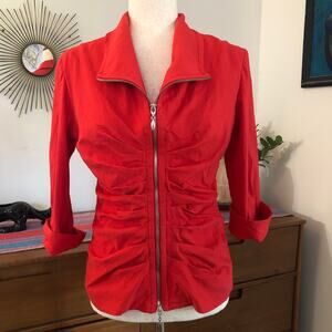 Vinage Joseph Ribkoff Red Zip Front Blazer Jacket Fitted 12 Large Office Siren Y2K