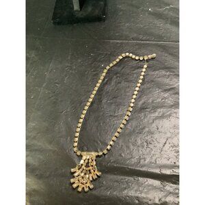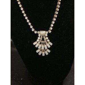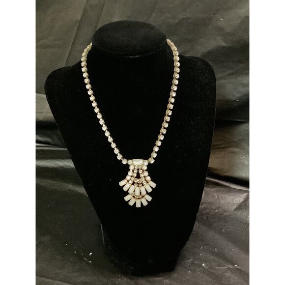 The necklace is perfect for special occasions such as weddings, anniversaries, and graduations. It is also a great gift for birthdays, Mother's Day, Father's Day, Christmas, and Valentine's Day. The necklace is 15 inches long and features a beautiful white rhinestone design. Get this unique piece of vintage jewelry today and add a touch of art to your collection.