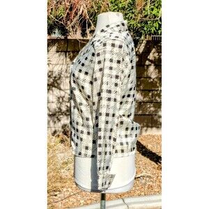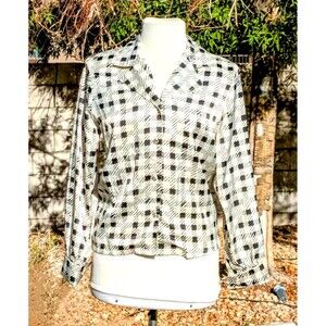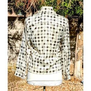 VTG Josephine Petites Sz2 White Check Shiny Button Down Shimmer Blouse Shirt GUC