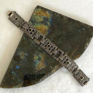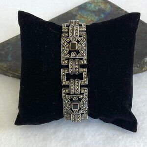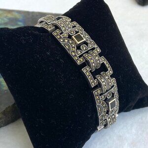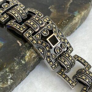VTG Judith Jack Sterling Silver 925 Marcasite Black Onyx Panel Bracelet 7" 43g
