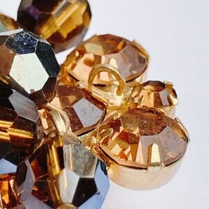 Juliana sets are prized for their distinctive craftsmanship, and this example delivers—with figure-eight puddling, wire-over beadwork, and riveted construction consistent with DeLizza & Elster’s 1950s–1960s designs. A bold cha cha cluster in warm autumn tones, it offers the collectible appeal and substantial, weighty feel that define genuine mid-century jewelry.