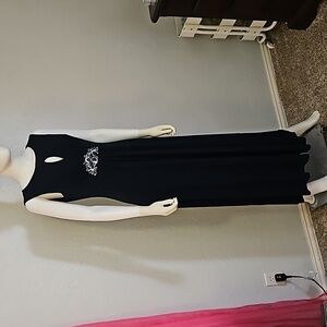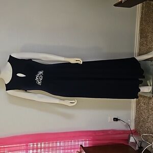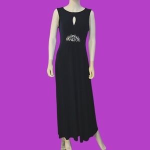 VTG KARIN STEVENS Navy Grecian Sleeveless Keyhole Glam Maxi Dress