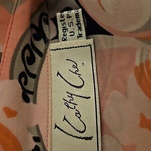 VTG KATHY CHE Pink Floral Mod Chiffon Button Down Assymetric Collared Shirt