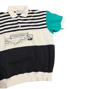This VTG Kenny Rogers Color Block Polo Shirt for men in size M features a cream fabric with multicolor accents and a spread collar. The shirt is made of 100% cotton jersey material, with a regular fit and a chest size of 26 inches. This vintage polo is suitable for various occasions such as travel, activewear, parties, or casual wear, making it a versatile addition to any wardrobe. Perfect for all seasons, this Kenny Rogers polo is a stylish and comfortable choice for men looking for a classic yet unique shirt.