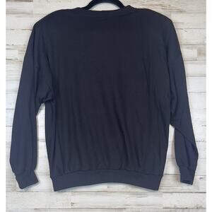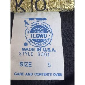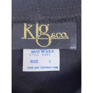 Vintage KJG & Co sweatshirt, size Small, made in USA with ILGWU union tag. Black cotton/poly blend with bold applique golf graphic, stud accents at neckline, ribbed cuffs and hem, and of course, shoulder pads. See photos for details and measurements. Most items ship next day.