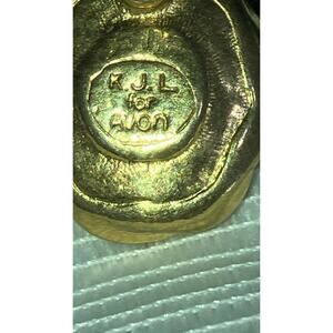 VTG KJL for AVON Pierced Gold Tone Blue Oval Cabochon Earrings