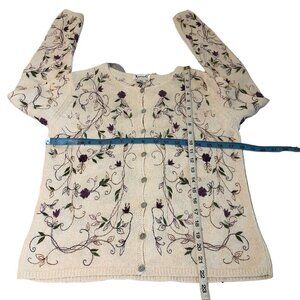VTG KNITTING NEEDLES Silk Cardigan Women’s Size Small Cream Floral Embroidery