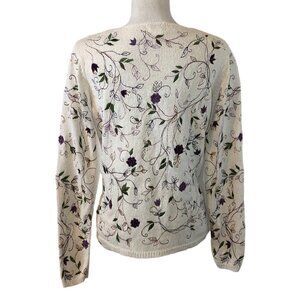Vintage KNITTING NEEDLES Silk Cardigan Women’s Size Small Purple Cream Embroidery Floral Multicolor