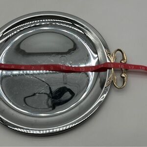 VTG KROMEX Serving Tray Dish Platter w/ Gold Brass Handles 13 3/8" Round USA MCM