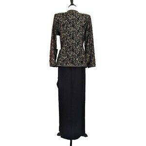 VTG Karen Lawrence Sz 10 Gold Black Brocade Velvet Jacket with Long Black Dress