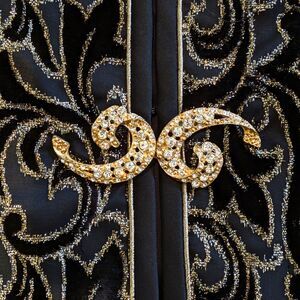 * Long sleeve jacket with gold tinsel and velvet. The velvet is black but looks maroon when it catches the light.