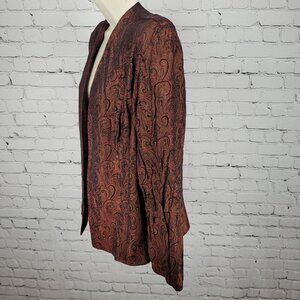 VTG Karen Miller Red & Gold Metallic Brocade Open Lined Jacket USA Made Size 16
