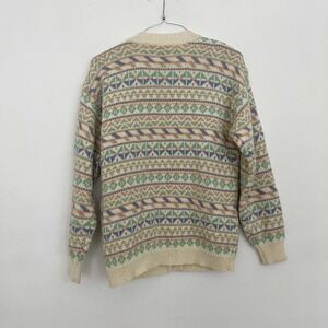 VTG Karen Scott Alpine Cardigan Women's Medium Cream Pastel V Neck Oversized