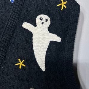 VTG Karen Scott Sweater Vest Hand Embroidered Black Halloween Fall Pumpkin XL