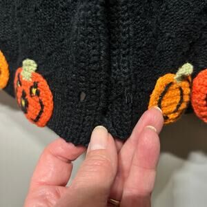 VTG Karen Scott Sweater Vest Hand Embroidered Black Halloween Fall Pumpkin