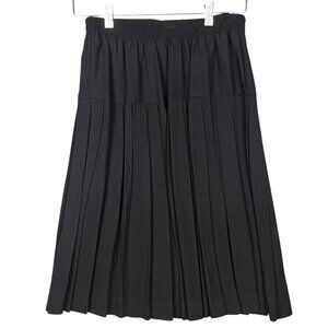 Skirt details: Pull-on style with elastic waist, mid-length pleated silhouette