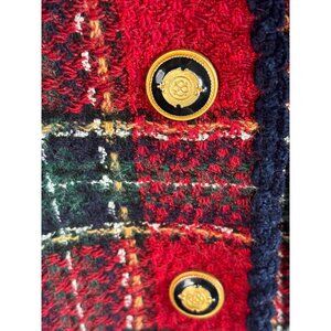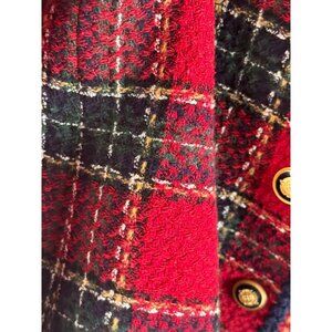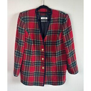 VTG Kasper II ASL Plaid Wool Blend Blazer Red Green Gold Button Jacket Size 14
