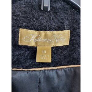 VTG Katherine Kelly Black Alpaca Wool Coat Plus Size 18 Swing Trench Lined