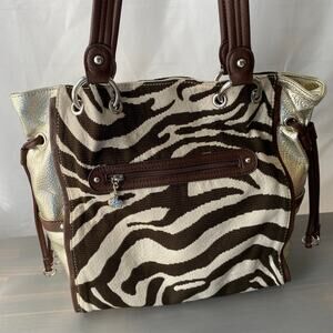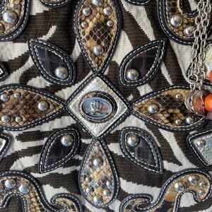 Rare find Vintage Kathy Van Zeeland Zebra Tote Bag in metallic brown with 3D studded snakeskin floral artwork design