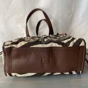 VTG Kathy Van Zeeland Zebra Tote Bag Brown Southwestern Studded 3D Art Floral