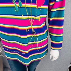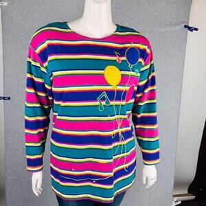 VTG Kathy White Sport Womans 1X Cardigan Shirt Music Stripes Ballon Teal Teacher