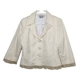 VTG Kay Unger Blazer Jacket Collared Button Up Tulle Hem Striped White Cream 6