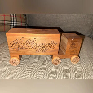 VTG Kellogg’s Cereal/Kellanova Toystalgia 1983 Wooden Train Coin/Piggy Bank Toy