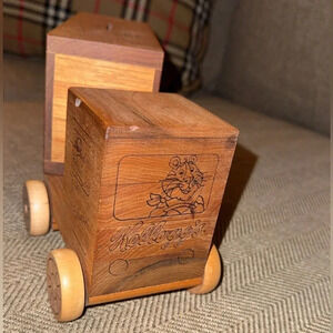 Vintage Kellogg’s Cereal/Kellanova Toystalgia 1983 Wooden 2 Piece Train Set Money/Coin/Piggy Bank