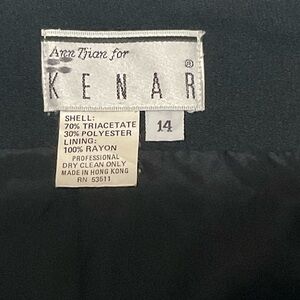 Vintage Ann Tjian for Kenar Skirt Womens 14 Black A-Line Back Slit Lined Knee Length Office Glam 80s Hong Kong