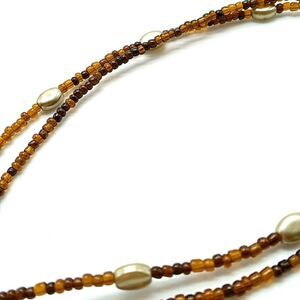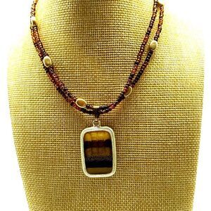 VTG Kenneth Cole 2-Strand Necklace Beaded Earth Tone Enamel Pendant Faux Pearls