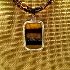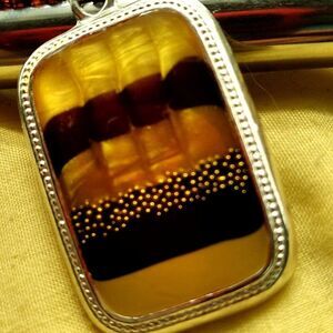 ♦ Earth Tone Enamel Pendant with Silver-tone Backing