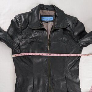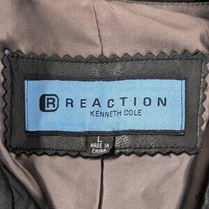 VTG Kenneth Cole Reaction Black Leather Full Zip Collared Leather Jacket Y2k