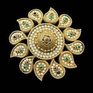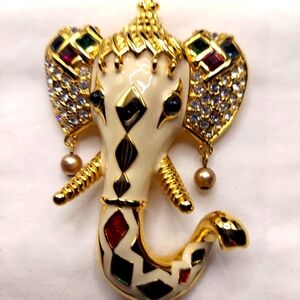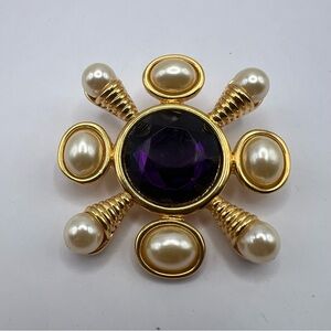 Vintage gold tone brooch by Kenneth Jay Lane. Roman coin motif. EUC showing minor wear.