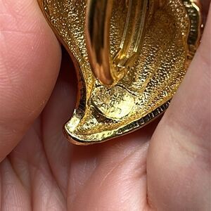 VTG Kenneth Jay Lane KJL Avon Gold Shell Scarf Clip with rhinestones