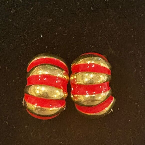 Vibrant gold and red earrings. Bold striped design. Perfect for any outfit. No flaws! Beautiful!