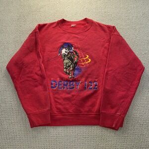 VTG Kentucky Derby 122 Horse Racing Graphic Red Crewneck Sweatshirt Mens L