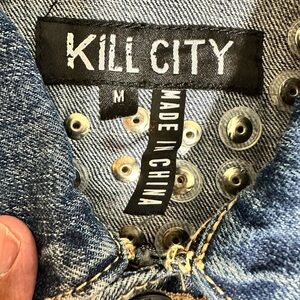 VTG Kill City Denim Studded Trucker/Bike Vest Punk Skull Hippie Adult Medium