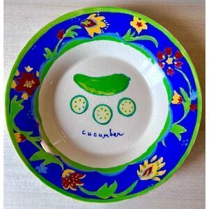 VTG Kimberly Hodges Garden Delights Blue Bowl Set of 3 Artichoke/Leek/Cucumber